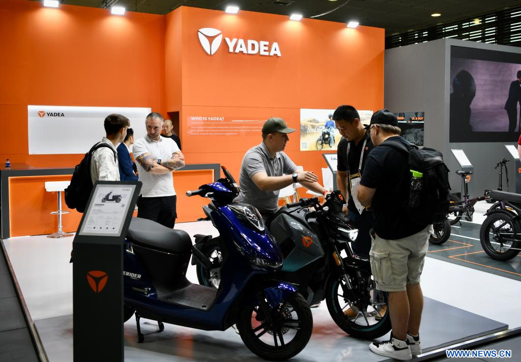 BERLIN, 6 septembre (Xinhua) -- Des visiteurs se rendent sur le stand de YADEA lors de l'IFA Berlin 2025, à Berlin, en Allemagne, le 6 septembre 2025.