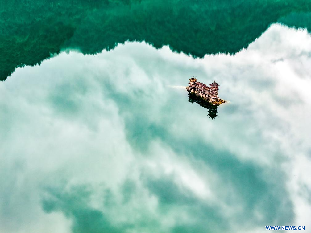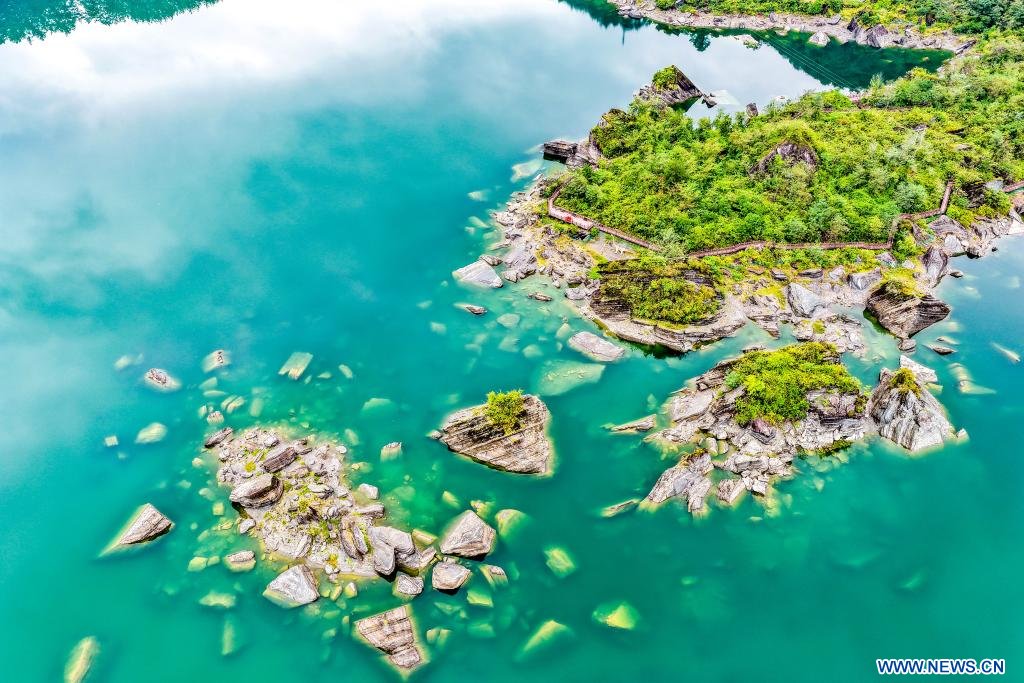 CHONGQING, 10 septembre (Xinhua) -- Vue aérienne de la réserve naturelle des zones humides de Xiaonanhai, située à Chongqing, dans le sud-ouest de la Chine, le 9 septembre 2025. (Photo : Tang Yi)