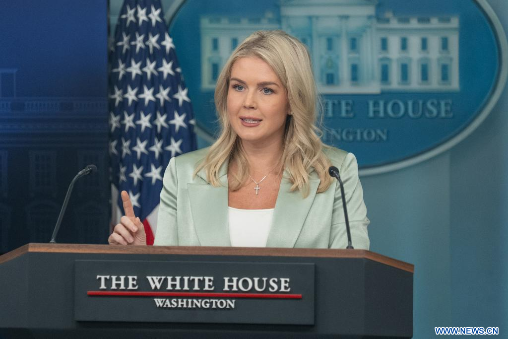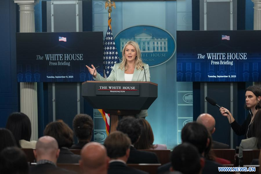 La porte-parole de la Maison Blanche, Karoline Leavitt, s'exprime lors d'un point presse à la Maison Blanche à Washington, D.C., aux Etats-Unis, le 9 septembre 2025. (Xinhua/Hu Yousong)