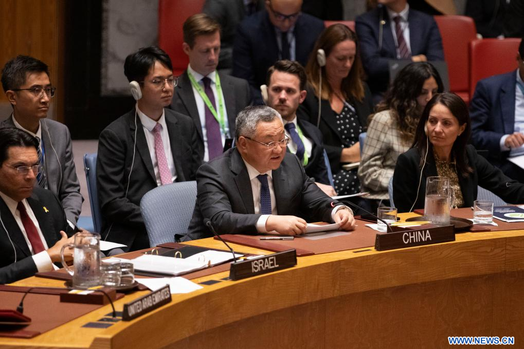 NEW YORK (Nations Unies), 12 septembre (Xinhua) -- Fu Cong, représentant permanent de la Chine auprès des Nations Unies, a fermement condamné jeudi l'attaque israélienne menée à Doha au Qatar, appelant l'Etat hébreu à cesser toutes ses opérations militaires dans la bande de Gaza.
