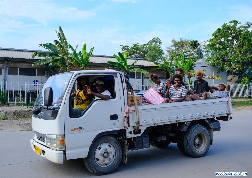 HONIARA, 12 septembre (Xinhua) -- Des habitants circulent sur une camionnette à Honiara, dans les Îles Salomon, le 9 septembre 2025. (Xinhua/Liu Xiaoyu)