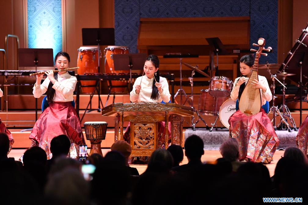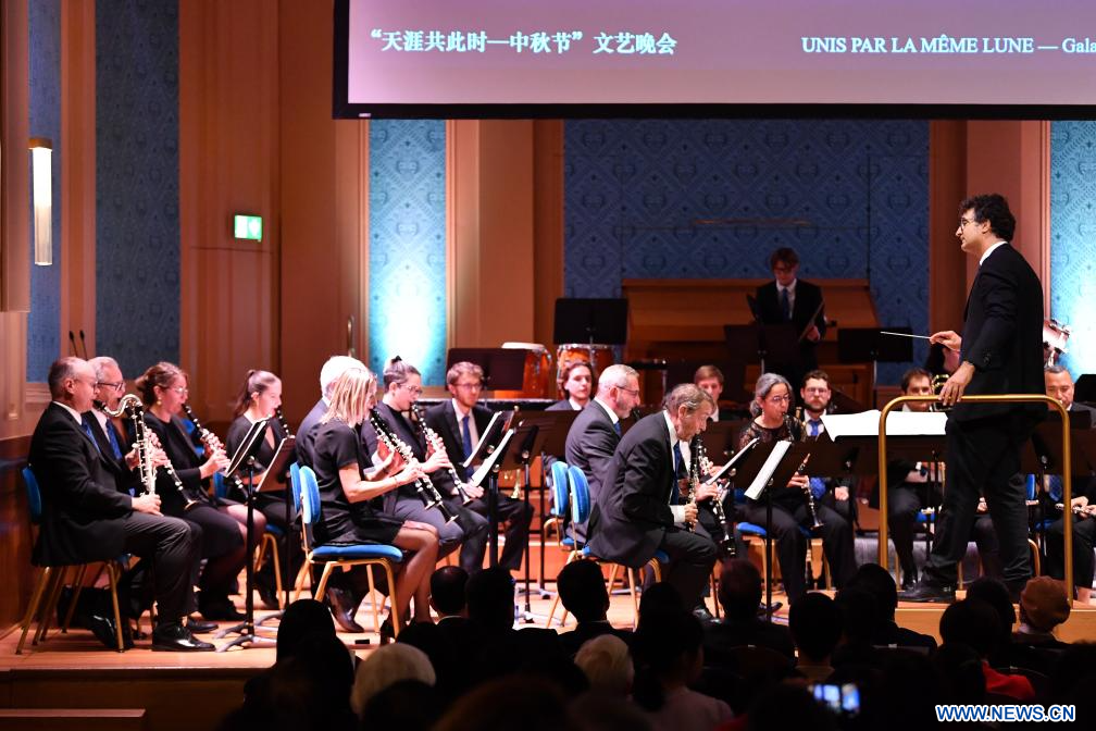 GENEVE, 24 septembre (Xinhua) -- Des artistes se produisent lors d'un gala de la fête de la mi-automne à Genève, en Suisse, le 23 septembre 2025. Le gala s'est tenu mardi soir afin de célébrer le 76e anniversaire de la fondation de la République populaire de Chine et la fête de la mi-automne, qui auront lieu respectivement le 1er et le 6 octobre. (Xinhua/Lian Yi)
