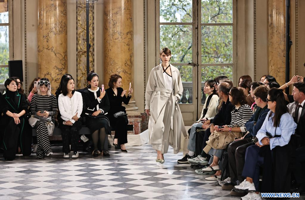 PARIS, 30 septembre (Xinhua) -- Des mannequins présentent des créations issues des collections printemps/été 2026 de NEXY.CO lors de l'événement Shenzhen Futian Fashion Day Paris organisé pendant la Fashion Week de Paris, en France, le 29 septembre 2025. (Xinhua/Gao Jing)
