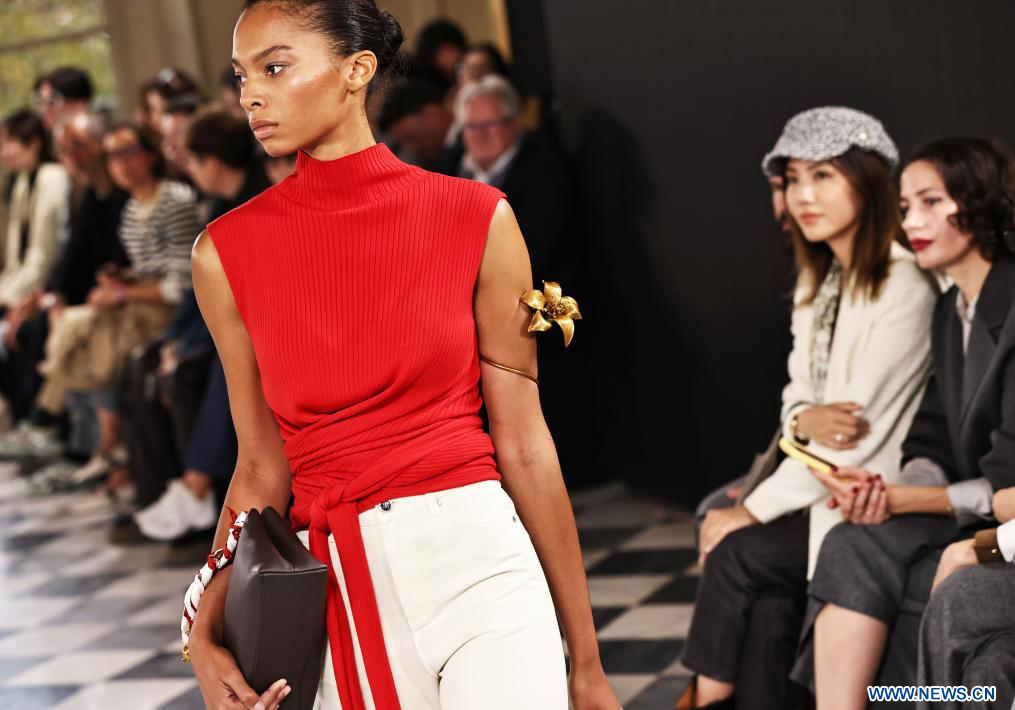 PARIS, 30 septembre (Xinhua) -- Une mannequin présente une création issue des collections printemps/été 2026 d'YINER lors de l'événement Shenzhen Futian Fashion Day Paris organisé pendant la Fashion Week de Paris, en France, le 29 septembre 2025. (Xinhua/Gao Jing)