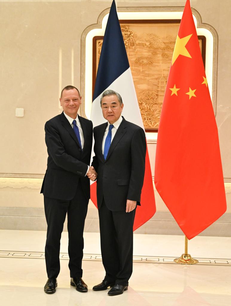 Selon M. Wang, la Chine et la France, en tant que membres permanents du Conseil de sécurité des Nations unies et grands pays indépendants, doivent construire des relations sino-françaises plus stables sur le plan stratégique et tournées vers l'avenir, qui soient conformes aux intérêts à long terme des deux peuples et remplissent les responsabilités internationales que les deux pays sont tenus de sauvegarder.