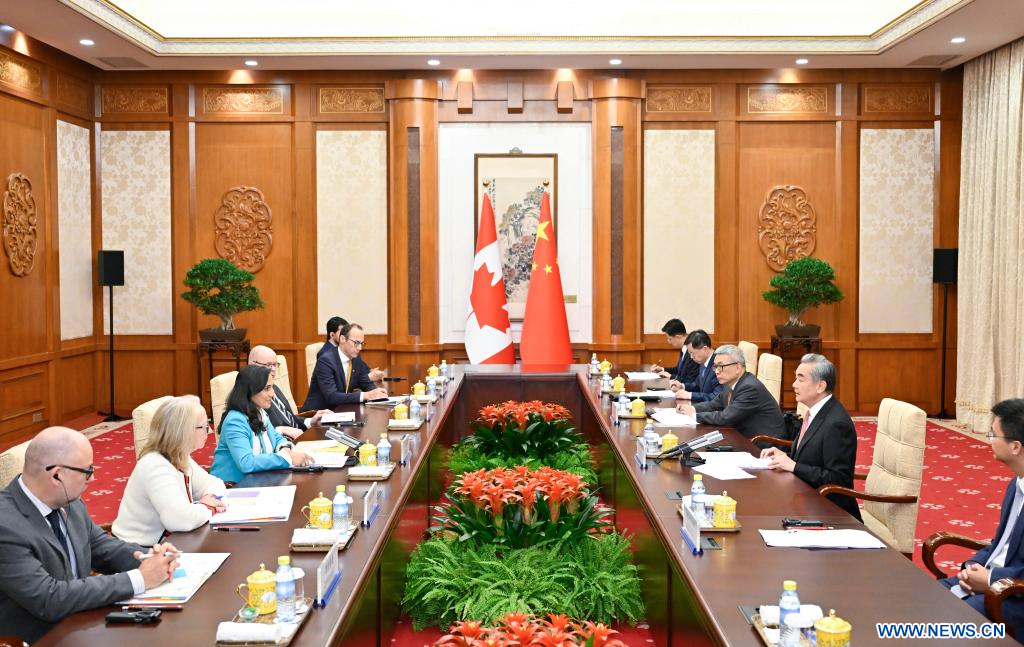 BEIJING, 17 octobre (Xinhua) -- Le ministre chinois des Affaires étrangères, Wang Yi, s'est entretenu vendredi à Beijing avec son homologue canadienne, Anita Anand. Les deux parties se sont engagées à améliorer leurs relations bilatérales.
