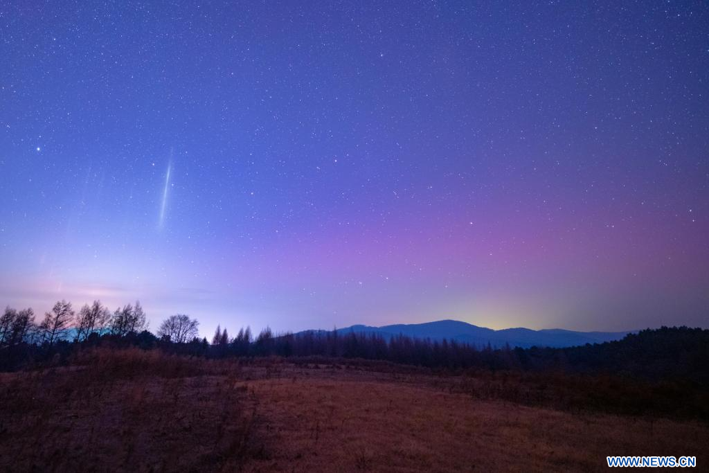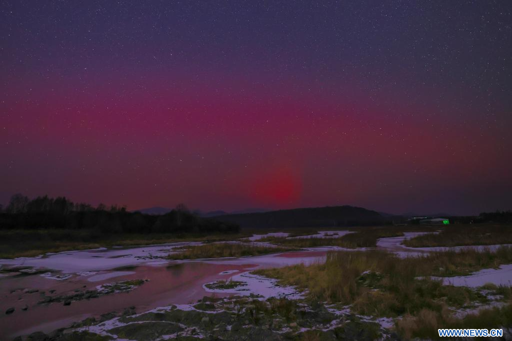 HARBIN, 13 novembre (Xinhua) -- Photo prise le 12 novembre 2025 de l'aurore du district de Jiayin, de la province chinoise du Heilongjiang (nord-est). (Photo : Li Shaojun)