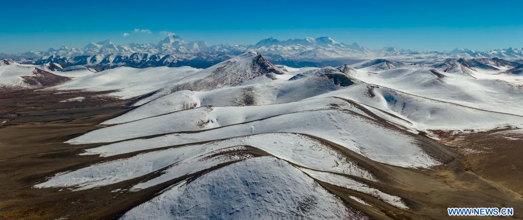 TINGRI, 14 novembre (Xinhua) -- Vue de l'Himalaya dans le district de Tingri, à Xigaze, dans la région autonome du Xizang (sud-ouest de la Chine), le 13 novembre 2025. (Photo : Jiang Fan)