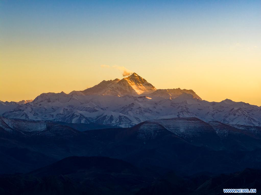 TINGRI, 14 novembre (Xinhua) -- Vue du mont Qomolangma au crépuscule dans le district de Tingri, à Xigaze, dans la région autonome du Xizang (sud-ouest de la Chine), le 13 novembre 2025. (Photo : Jiang Fan)