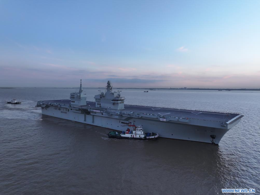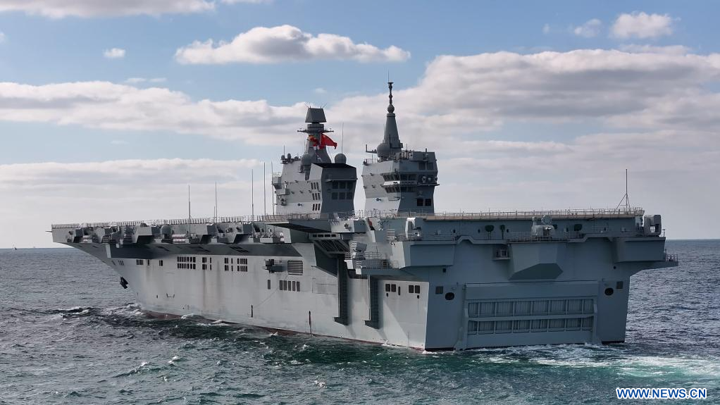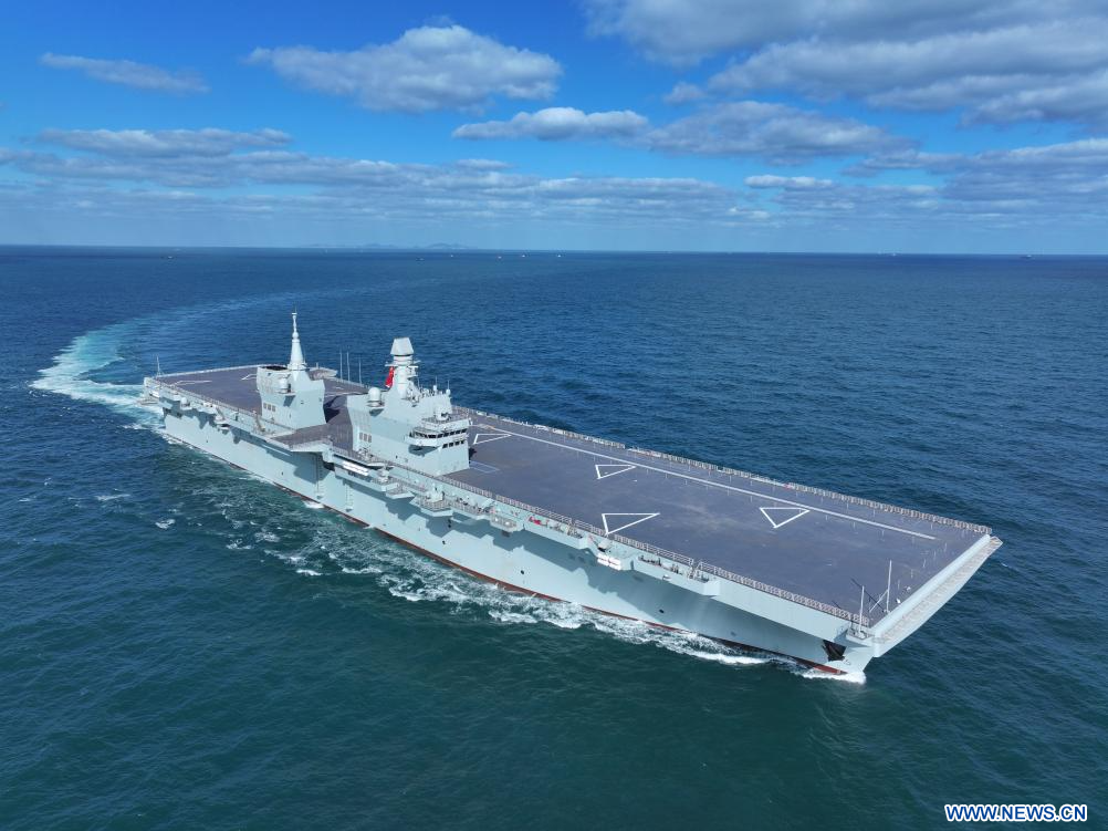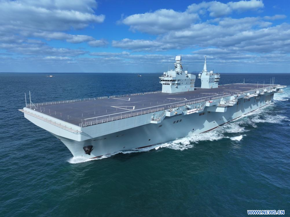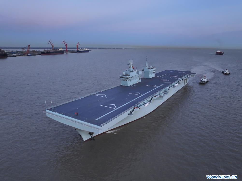 SHANGHAI, 16 novembre (Xinhua) -- Le premier navire d'assaut amphibie de type 076 de la Chine, le Sichuan, est revenu au chantier naval de Shanghai dimanche vers 17H00 après avoir terminé son premier essai en mer.