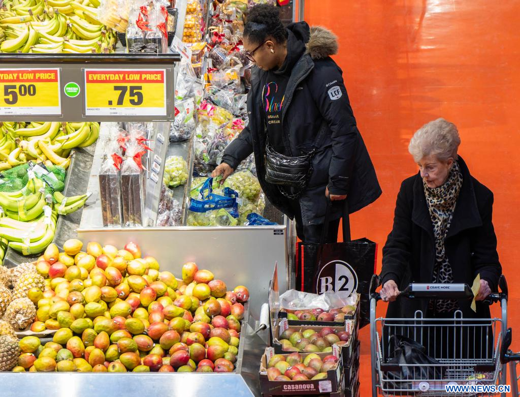 TORONTO, 15 décembre (Xinhua) -- Des clients achètent des fruits dans un supermarché de Toronto, au Canada, le 15 décembre 2025. L'indice des prix à la consommation (IPC) du Canada a augmenté de 2,2% en glissement annuel en novembre, soit la même hausse qu'en octobre, a annoncé lundi Statistique Canada. (Xinhua/Zou Zheng)