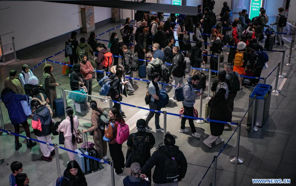 RICHMOND, 19 décembre (Xinhua) -- Des passagers font la queue au contrôle de sécurité à l'aéroport international de Vancouver à Richmond, en Colombie-Britannique, au Canada, le 18 décembre 2025. La saison des voyages pour les vacances d'hiver étant arrivée, l'aéroport international de Vancouver a traité plus de 76.800 voyages de passagers jeudi. (Xinhua/Liang Sen)