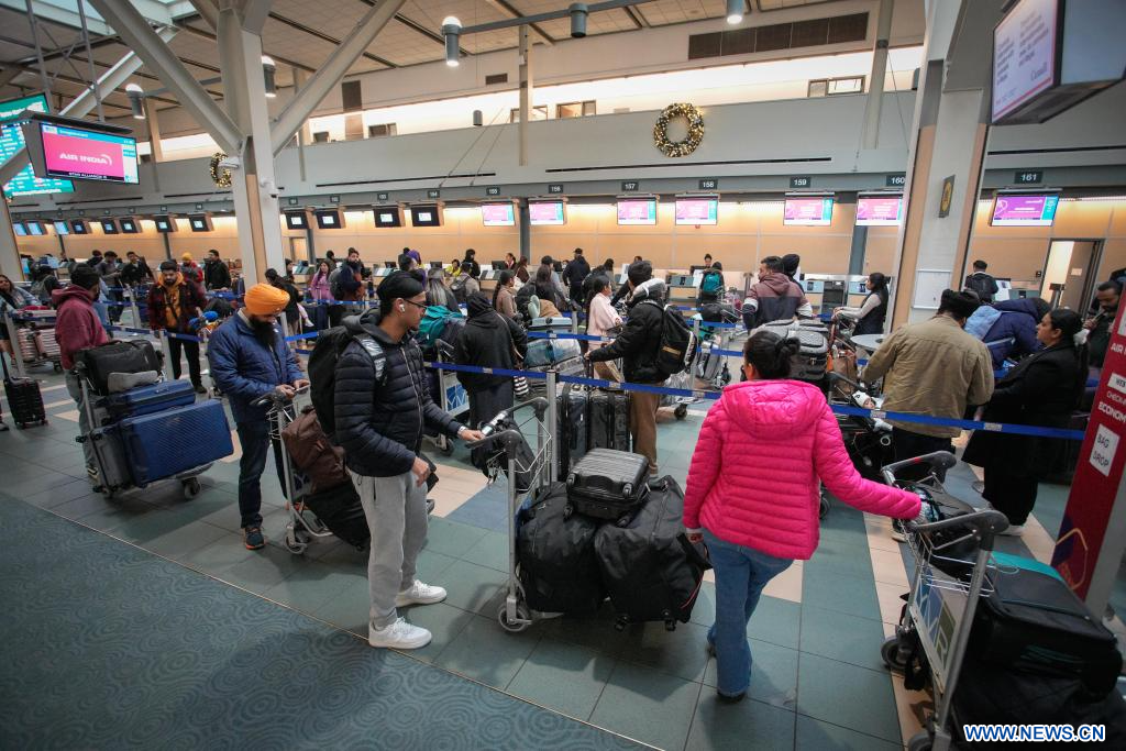 RICHMOND, 19 décembre (Xinhua) -- Des passagers font la queue pour s'enregistrer à l'aéroport international de Vancouver à Richmond, en Colombie-Britannique, au Canada, le 18 décembre 2025. La saison des voyages pour les vacances d'hiver étant arrivée, l'aéroport international de Vancouver a traité plus de 76.800 voyages de passagers jeudi. (Xinhua/Liang Sen)