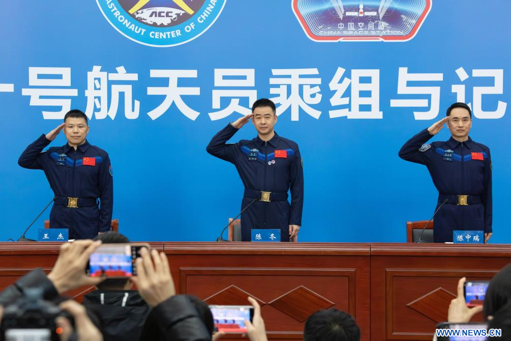 BEIJING, 17 janvier (Xinhua) -- Les trois astronautes de la mission chinoise Shenzhou-20 ont rencontré la presse vendredi à Beijing, lors de leur première apparition publique après leur retour sur Terre en novembre dernier.