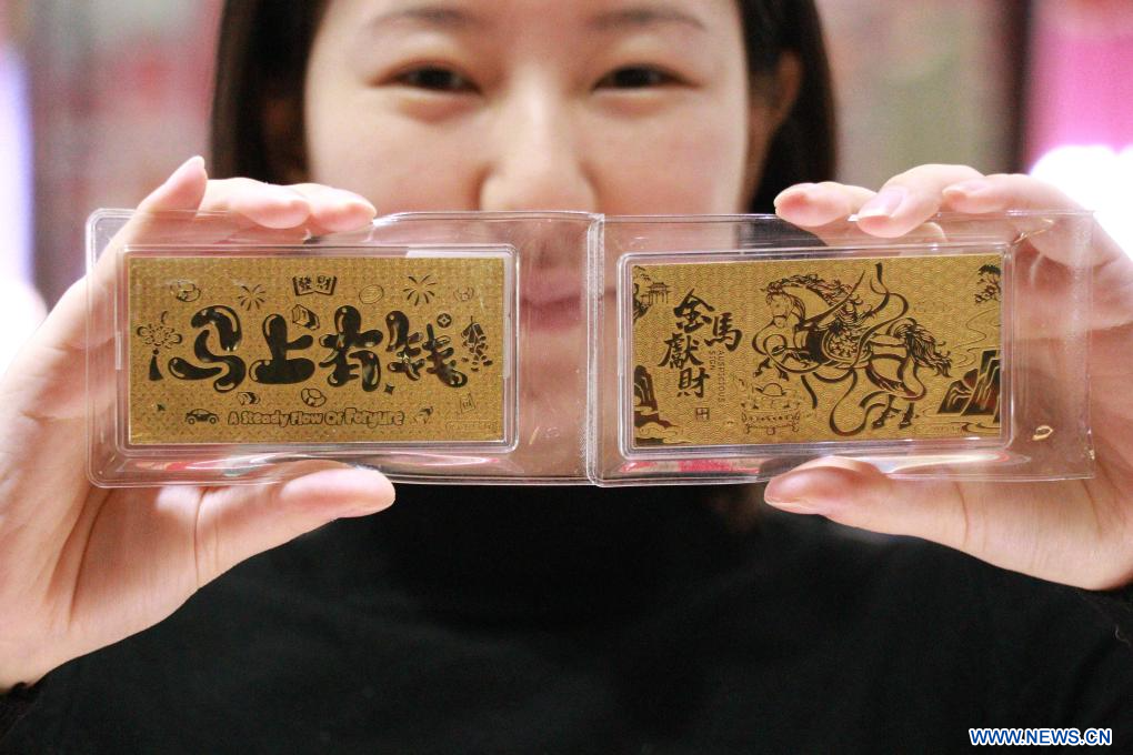 BEIJING, 21 janvier (Xinhua) -- Une vendeuse présente des produits en or sur le thème de l'année du cheval dans un magasin de la ville de Binzhou, dans la province chinoise du Shandong (est), le 16 janvier 2026. (Photo : Chu Baorui)
