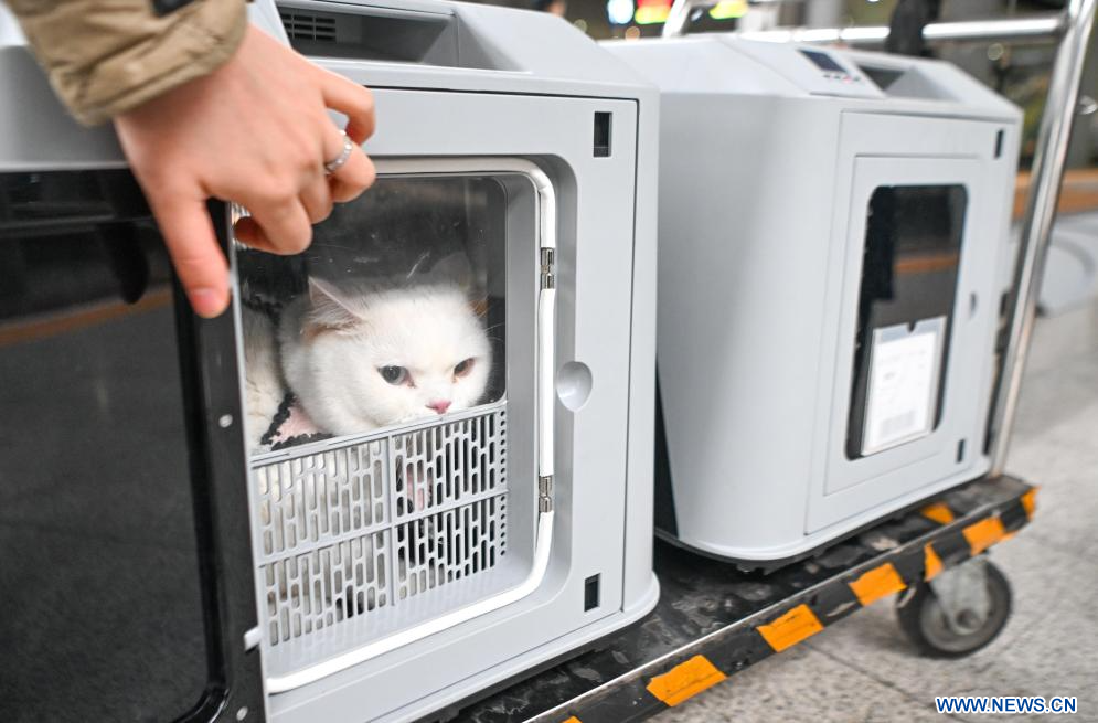 Les passagers peuvent réserver ce service à l'avance via 12306, la plateforme de réservation de la China Railway, pour leurs animaux domestiques éligibles. Ces animaux voyagent dans des cages dédiées à leur transport, équipées de systèmes de circulation d'air et de surveillance de la température et de l'humidité. (Photo : Tang Yi)