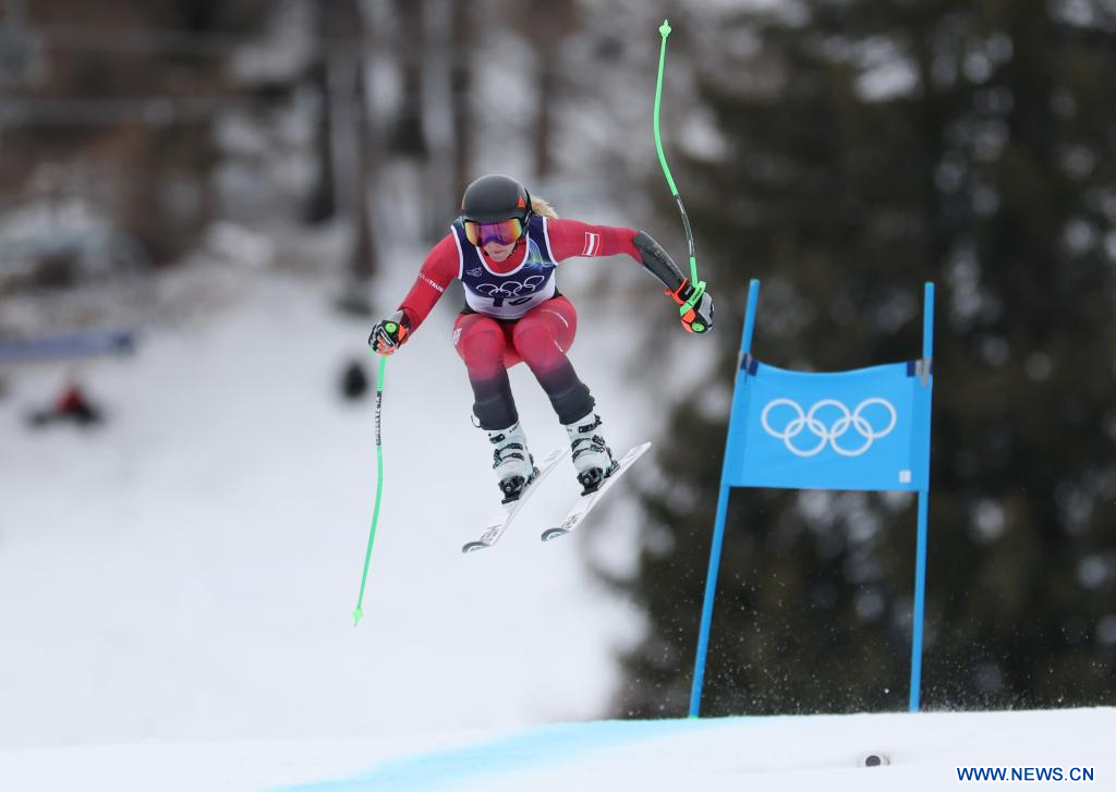 CORTINA D'AMPEZZO, 12 février (Xinhua) -- L'Autrichienne Cornelia Hütter participe au super-G féminin de ski alpin des Jeux olympiques d'hiver de Milan Cortina 2026 à Cortina d'Ampezzo, en Italie, le 12 février 2026. (Xinhua/Zhang Chenlin)
