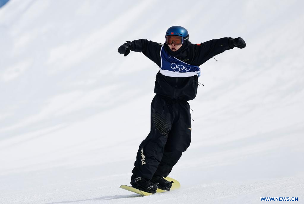 LIVIGNO (Italie), 18 février (Xinhua) -- Le Chinois Su Yiming participe à la finale du snowboard slopestyle hommes aux Jeux olympiques d'hiver de Milan Cortina 2026, à Livigno, en Italie, le 18 février 2026. (Xinhua/Wang Peng)