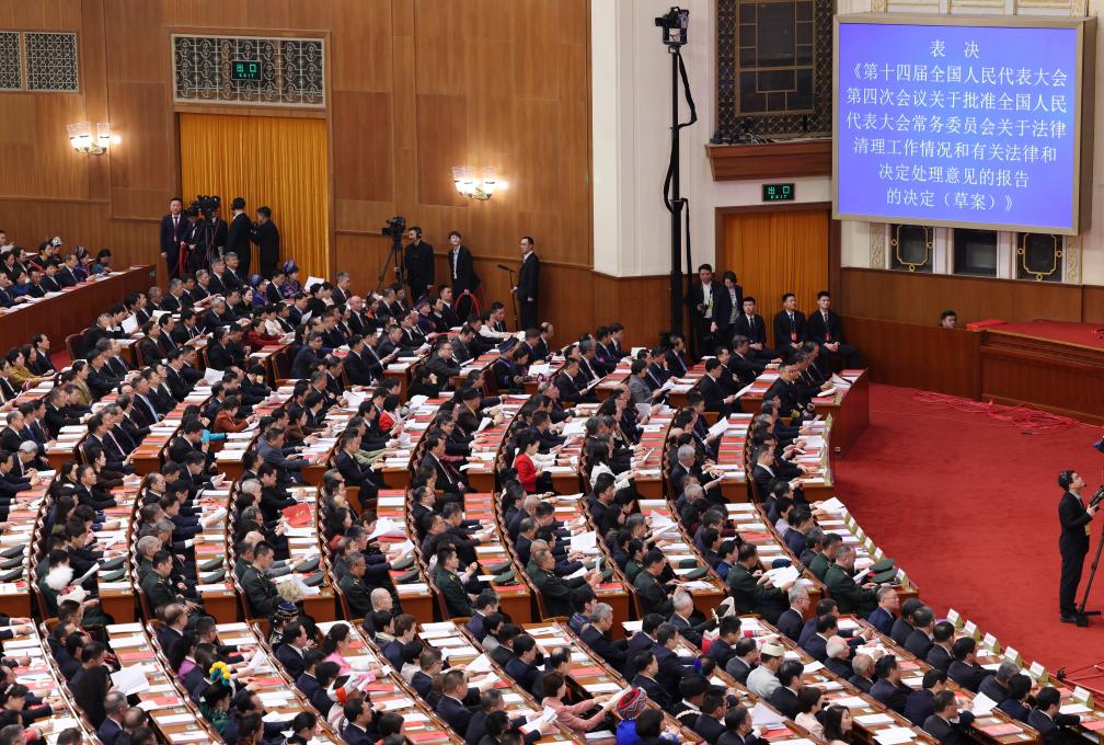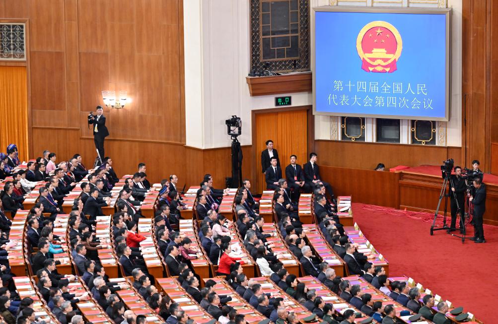 BEIJING, 12 mars (Xinhua) -- La 14e Assemblée populaire nationale, l'organe législatif national chinois, a tenu jeudi la réunion de clôture de sa quatrième session.