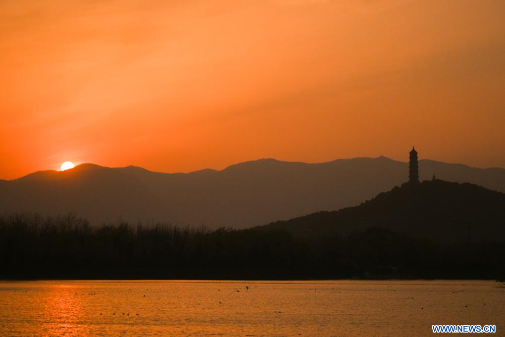 BEIJING, 29 mars (Xinhua) -- Photo du coucher de soleil prise depuis le Palais d'été à Beijing, capitale chinoise, le 27 mars 2026. (Photo : Xin Yuewei)