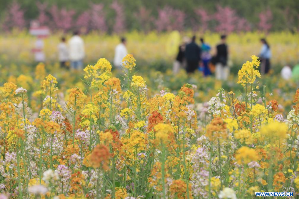 BEIJING, 4 avril (Xinhua) -- Des touristes se détendent dans un champs de fleurs de colza du district de Wenxian, à Jiaozuo, dans la province chinoise du Henan (centre), le 2 avril 2026. (Photo : Huang Fuxing)