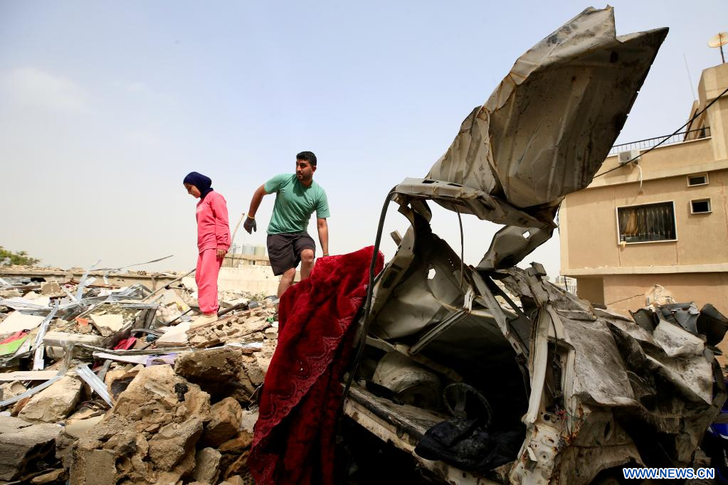 JIBCHIT, 19 avril (Xinhua) -- Des personnes déplacées revenues dans leur ville inspectent des maisons détruites lors des attaques israéliennes à Jibchit, au Liban, le 18 avril 2026. Un cessez-le-feu de dix jours entre Israël et le Liban est entré en vigueur à minuit entre jeudi et vendredi, heure locale (21H00 GMT), suite à une annonce faite plus tôt par le président américain Donald Trump. (Xinhua/Ali Hashisho)
