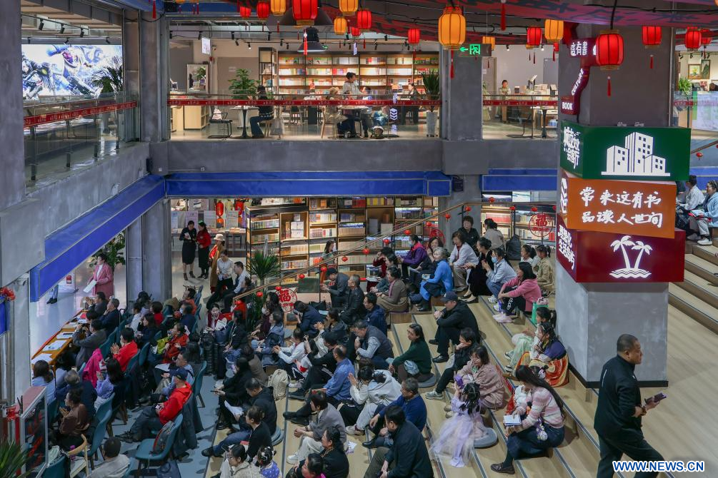 CHANGCHUN, 23 avril (Xinhua) -- Des habitants choisissent des livres dans une librairie à Changchun, capitale de la province du Jilin (nord-est de la Chine), le 16 avril 2026. Ces dernières années, Changchun a favorisé la transformation des librairies classiques en espaces d'expérience culturelle complète en introduisant et en développant des concepts de lecture innovants. (Photo : Xu Chang)