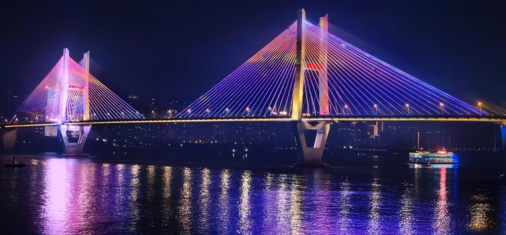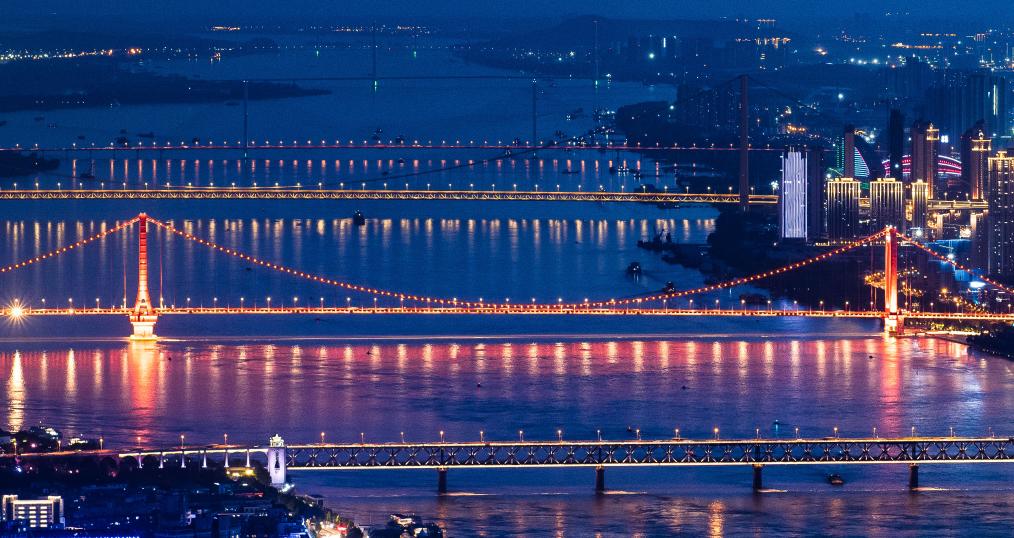 WUHAN, 26 avril (Xinhua) -- Vue nocturne du Pont du fleuve Yangtsé à Wuhan, capitale de la province chinoise du Hubei (centre), le 25 décembre 2025.