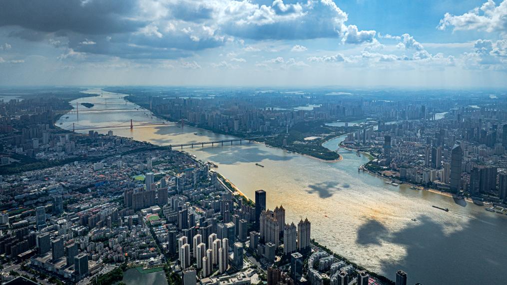 WUHAN, 26 avril (Xinhua) -- Vue aérienne du fleuve Yangtsé à Wuhan, capitale de la province chinoise du Hubei (centre), le 29 juillet 2025.