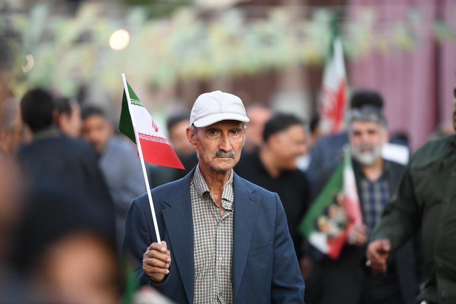 TEHERAN, 30 avril (Xinhua) -- Des manifestants participent à un rassemblement à Téhéran, en Iran, le 29 avril 2026. Des dizaines de milliers d'Iraniens sont descendus mercredi dans les rues dans le cadre des rassemblements organisés dans tout le pays pour réaffirmer leur allégeance au Guide suprême Mojtaba Khamenei et manifester l'unité nationale.(Xinhua/Shadati)