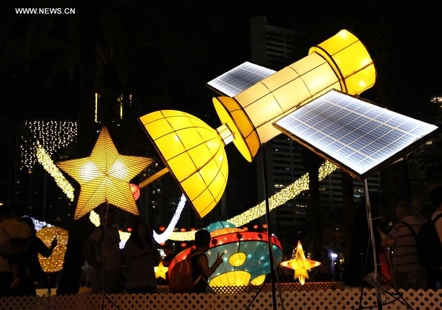 De belles lanternes sont exposées au parc Victoria pour accueillir le fête de la mi-automne à Hong Kong, dans le sud de la Chine, le 22 septembre 2018. (Xinhua/Wu Xiaochu)