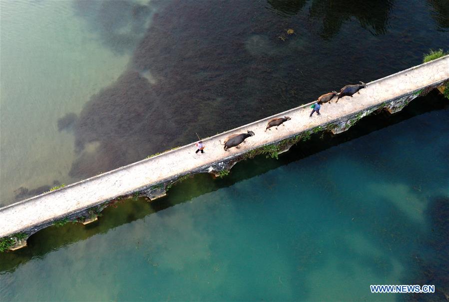 Photo aérienne prise le 27 novembre 2018 montrant le paysage du village d'E'quan du bourg de Xinjing à Jingxi, dans la région autonome Zhuang du Guangxi (sud de la Chine). (Xinhua/Zhou Hua)