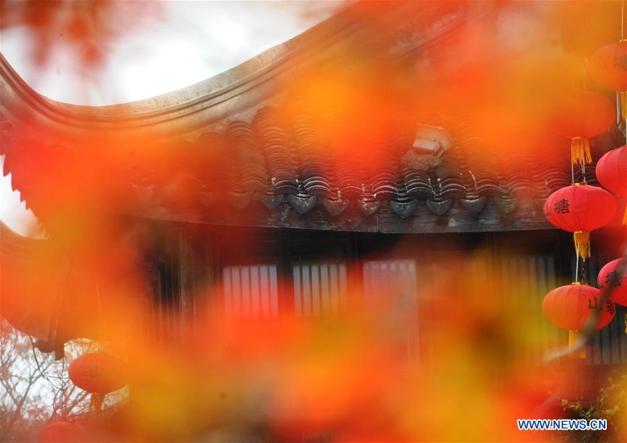 Photo prise le 12 décembre 2018 montrant le paysage de feuilles rouges dans l'ancienne rue de Shantang à Suzhou, dans la province chinoise du Jiangsu (est). (Xinhua/Hang Xingwei)