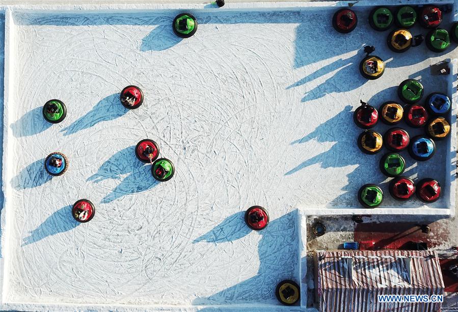Des touristes s'amusent sur la rivière Songhua gelée à Harbin, capitale de la province chinoise du Heilongjiang (nord-est), le 20 janvier 2019. (Xinhua/Wang Jianwei)