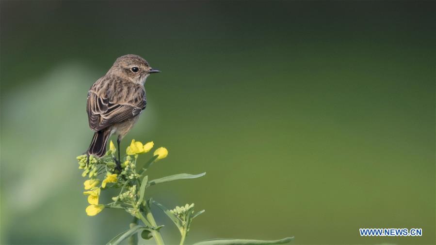 Un oiseau sur une fleur de colza à Fuzhou, dans la province du Fujian (sud-est de la Chine), le 15 février 2019. (Xinhua/Mei Yongcun)