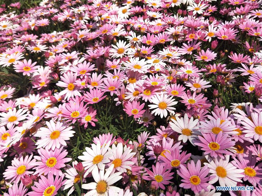 Photo prise avec un téléphone portable montrant des fleurs épanouies lors de l'Exposition horticole internationale 2019 de Beijing dans l'arrondissement de Yanqing à Beijing, capitale de la Chine, le 9 mai 2019. (Xinhua/Wei Mengjia)