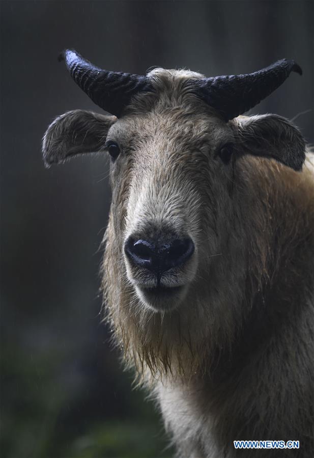 Photo prise le 26 juin 2019 montrant un takin aux monts Qinling, dans la province du Shaanxi (nord-ouest de la Chine). (Xinhua/Tao Ming)