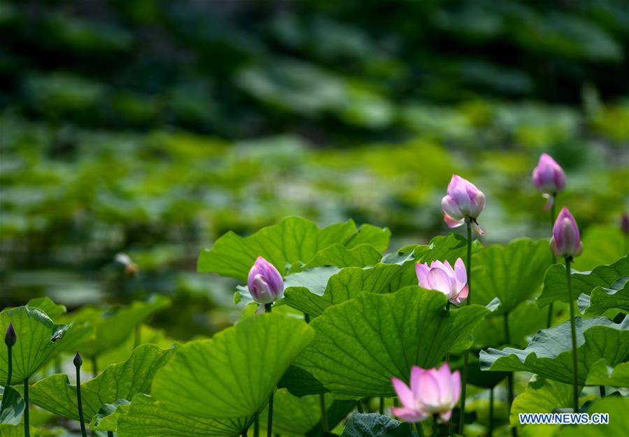 Photo prise le 2 juillet 2019 montrant des fleurs de lotus au lac Mati dans l'Université de Nankai à Tianjin, dans le nord de la Chine. (Xinhua/Yue Yuewei)
