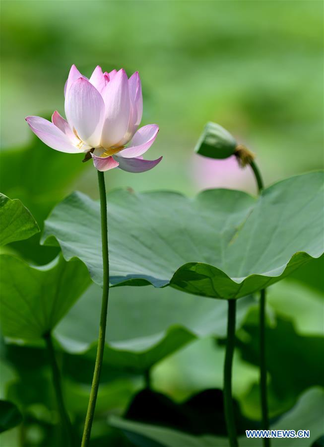 Photo prise le 2 juillet 2019 montrant une fleur de lotus au lac Mati dans l'Université de Nankai à Tianjin, dans le nord de la Chine. (Xinhua/Yue Yuewei)