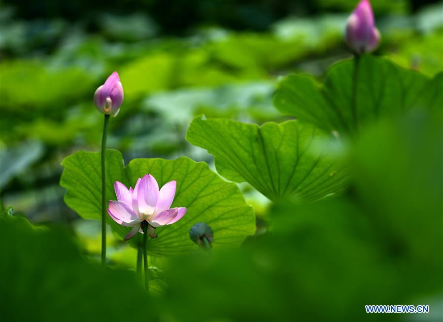 Photo prise le 2 juillet 2019 montrant des fleurs de lotus au lac Mati dans l'Université de Nankai à Tianjin, dans le nord de la Chine. (Xinhua/Yue Yuewei)