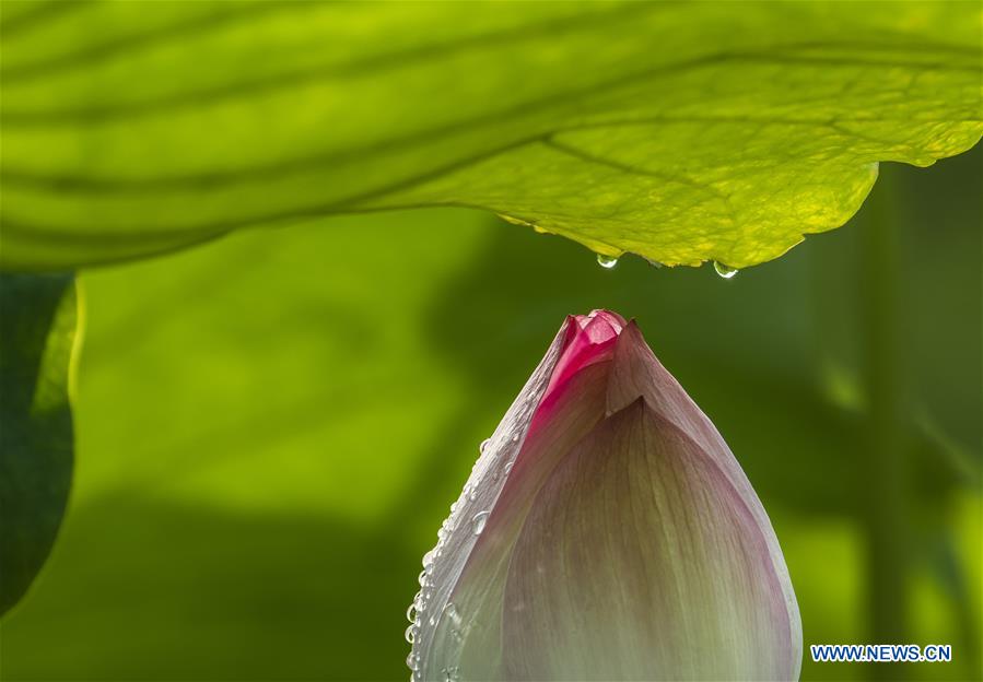 Photo prise le 7 juillet 2019 montrant un lotus dans un parc à Wuhu, dans la province de l'Anhui (est de la Chine). (Xinhua/Shui Congze)