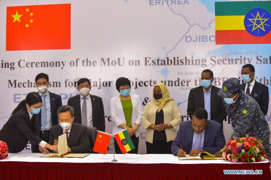ADDIS-ABEBA, 6 mars (Xinhua) -- La Chine et l'Ethiopie ont signé samedi un mémorandum d'accord (MoU) sur la mise en place d'un mécanisme de sauvegarde de la sécurité pour les grands projets de l'Initiative "la Ceinture et la Route" (ICR) en Ethiopie.