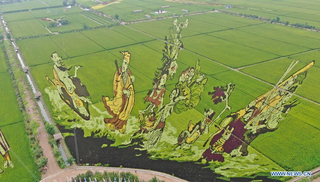 SHENYANG, 19 août (Xinhua) -- Vue aérienne des rizières à Shenyang, dans la province chinoise du Liaoning (nord-est), le 16 août 2021. (Photo : Yang Qing)