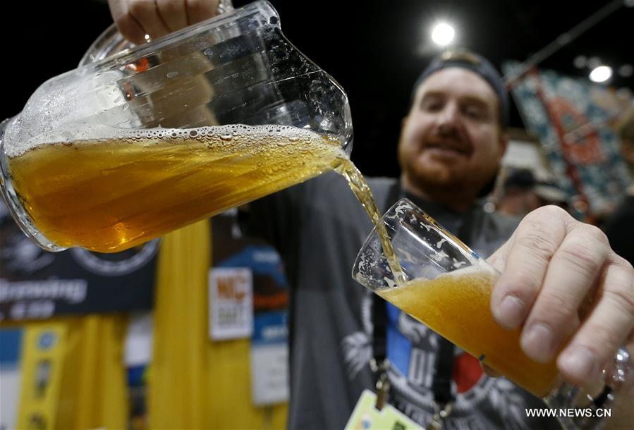 Un brasseur sert de la bière lors du festival « Great American Beer » 2018 à Denver, aux États-Unis, le 21 septembre 2018. (Xinhua/Li Ying)
