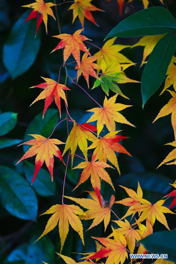 Photo prise le 22 novembre 2018 montrant des feuilles d'érable dans un parc à Bijie, dans la province du Guizhou (sud-ouest de la Chine). (Xinhua/Wang Chunliang)