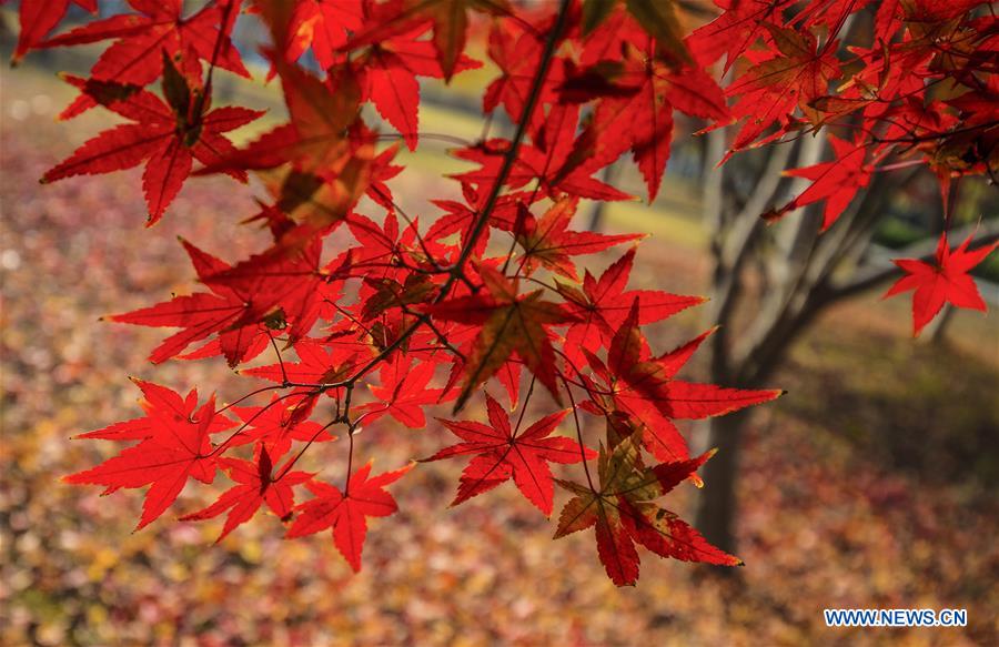 Photo prise le 22 novembre 2018 montrant des feuilles d'érable dans le district de Sihong à Suqian, dans la province du Jiangsu (est de la Chine). (Xinhua/Zhang Lianhua)