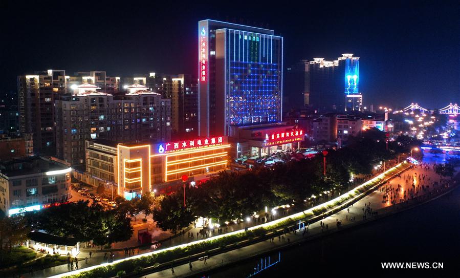 Photo prise le 17 décembre 2018 montrant la vue nocturne de la ville de Lipu, dans la région autonome Zhuang du Guangxi (sud de la Chine). (Xinhua/Zhou Hua)