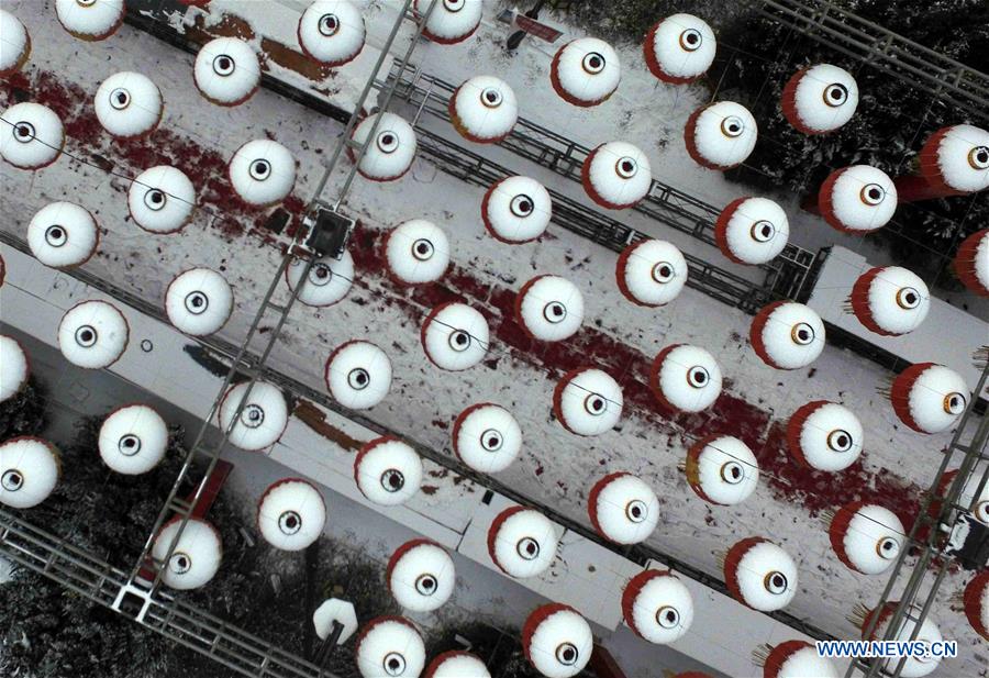 Photo prise le 10 février 2019 montrant le paysage de neige du district de Xinjiang à Yuncheng, dans la province du Shanxi (nord de la Chine). (Xinhua/Gao Xinsheng)