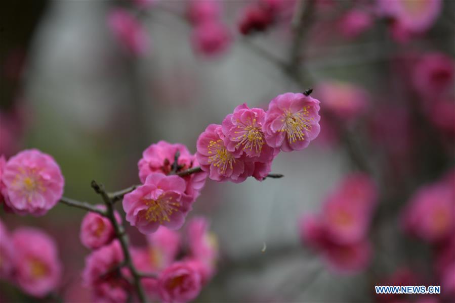 Photo prise le 1er mars 2019 montrant des fleurs de prunier dans le district de Xuan'en de la préfecture autonome Tujia et Miao d'Enshi, dans la province du Hubei (centre de la Chine). (Xinhua/Song Wen)