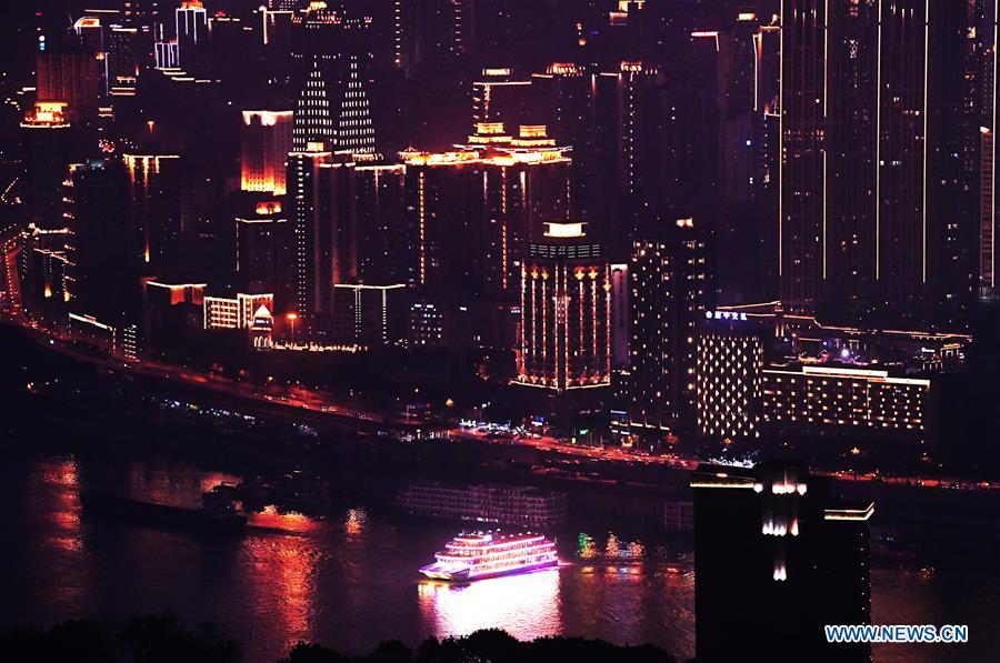 Photo prise le 19 mars 2019 montrant la vue nocturne à Chongqing, dans le sud-ouest de la Chine. (Xinhua/Wang Quanchao)